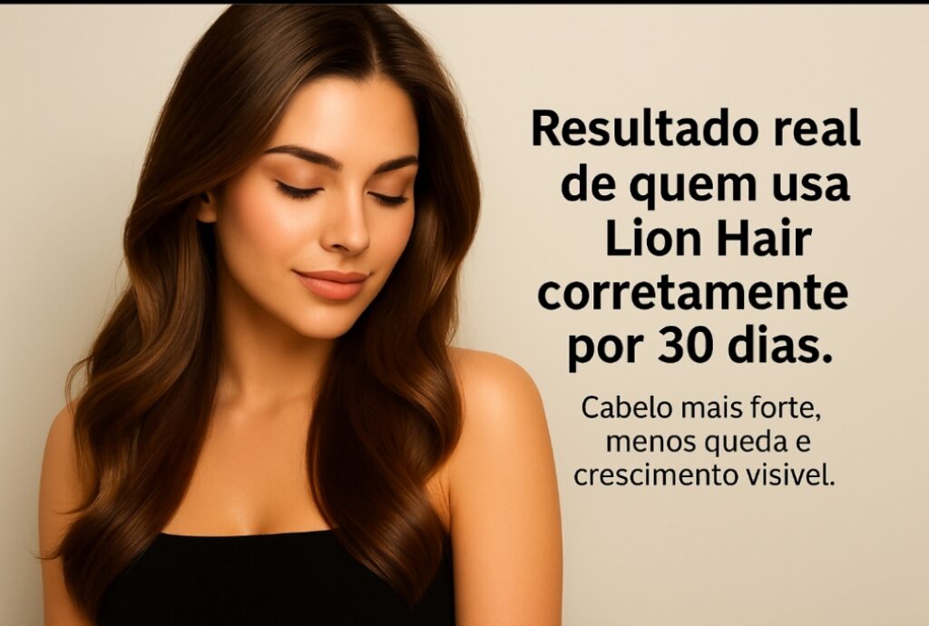Suplemente seu cabelo de dentro pra fora com LION HAIR — fórmula com vitaminas que aceleram crescimento e reduzem queda.